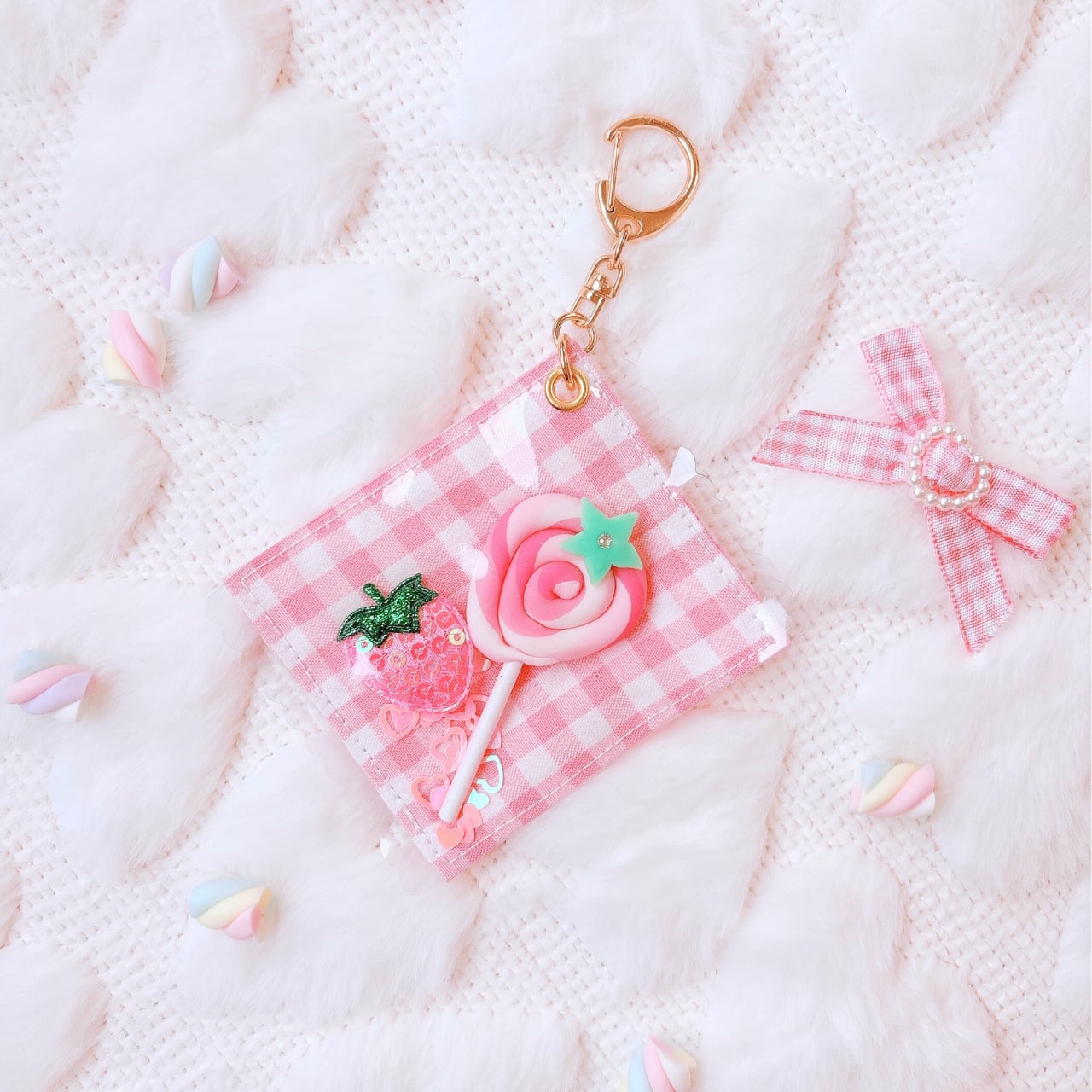 いちごのペロキャンとハートフレークをパッケージに閉じ込めました♡